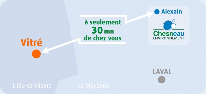 Nous intervenons sur Vitré et ses alentours. Chesneau Environnement n'est basé qu'à 30 mn de Vitré. Les communes du 35 où nous travaillons sont : Rennes - Cesson Sévigné - Acigné - Brécé - Chateaubourg - Saint Didier - Saint Aubin des landes - Cornille - Etrelles - Pocé les Bois - Montreuil sous Pérouse - Balazé - La Chapelle Erbrée - Erbrée - Mondevert - Bréal sous Vitré - Saint M'Hervé - Montatour - Taillis - Val d'Izé - Princé
